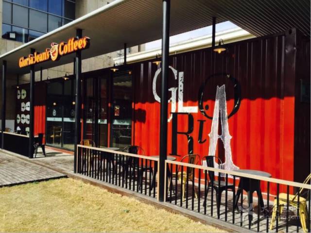 来自澳洲的第一咖啡品牌Gloria Jean’sCoffees,是品牌在上海的第九家门店。店铺以6个集装箱拼装而成,可谓霸气侧漏!